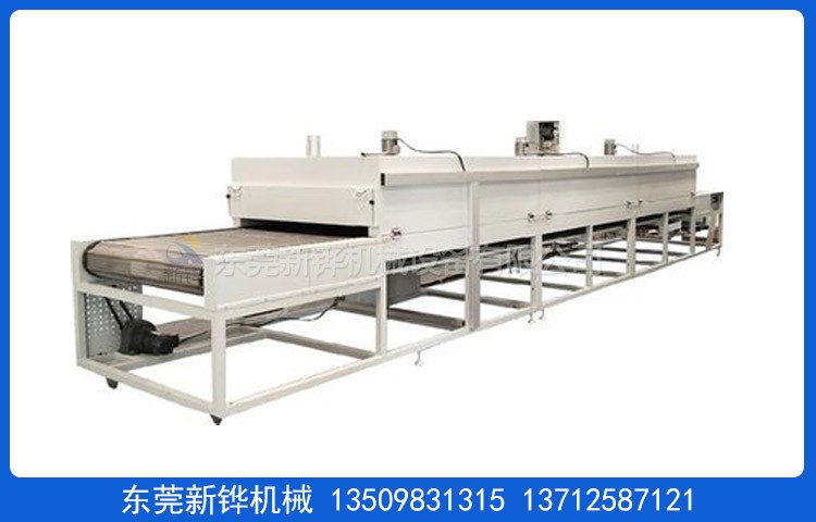 輸送鏈板、鋼帶或網帶與電熱元件或加熱管之間產生相對運動。從而完成均勻烘干、輸送的